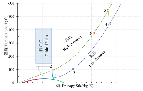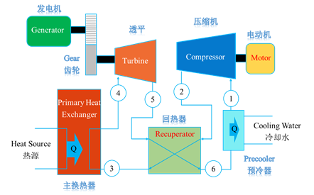 超臨界CO2布雷頓循環熱力發電,在較低的循環溫度下具有較高的熱效率,發電效率高。超臨界CO2密度高,傳熱性好,能量密度大,壓氣機、渦輪尺寸小,比功率大,用于熱電廠、光熱發電、核電等電力系統。